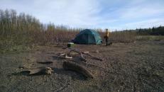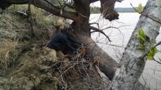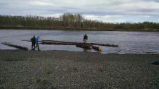 Wood is really valuable in the bush both for heating and construction. Each spring when the river breaks the ice moves out in big chunks and takes down some trees with it. Conveniently the ice (usually) strips the trees of limbs and leaves them on the banks of the river. Although some of the logs are higher up the bank and still have some branches. So we took the opportunity to boat up river, collect the logs, build them into a raft, and then push it back to Bethel to use as firewood for the winter.